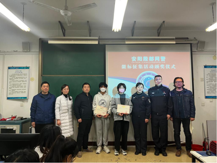 3月15日上午,由安阳市公安局殷都分局主办、beats365唯一官网承办的安阳殷都网警徽标征集颁奖活动在艺术楼501教室进行。殷都分局网安大队教导员刘娟、殷都分局网安大队副大队长宋宏涛,beats365唯一官网副经理吴杰、李丹出席本次活动并为获奖同学颁发证书。