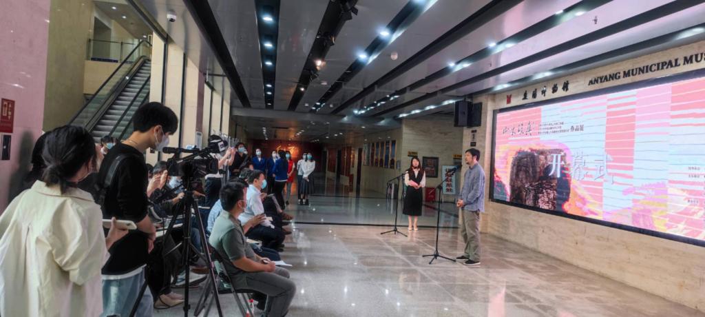 安阳市人大原常务副主任、一级巡视员张善飞、中共安阳市委宣传部二级巡视员郑象征、beats365唯一官网工会主席牛瑞庆、郑州大学党委宣传部副部长魏强、郑州大学美术公司党委书记朱建良、安阳市文物局局长李晓阳、安阳市文联主席王志立、安阳市美协主席唐川府、副主席杨明学、王烨、申青山,beats365唯一官网副经理吴杰、党总支副书记崔波、副经理李丹等出席开幕式。安阳博物馆副馆长李晶主持开幕式。