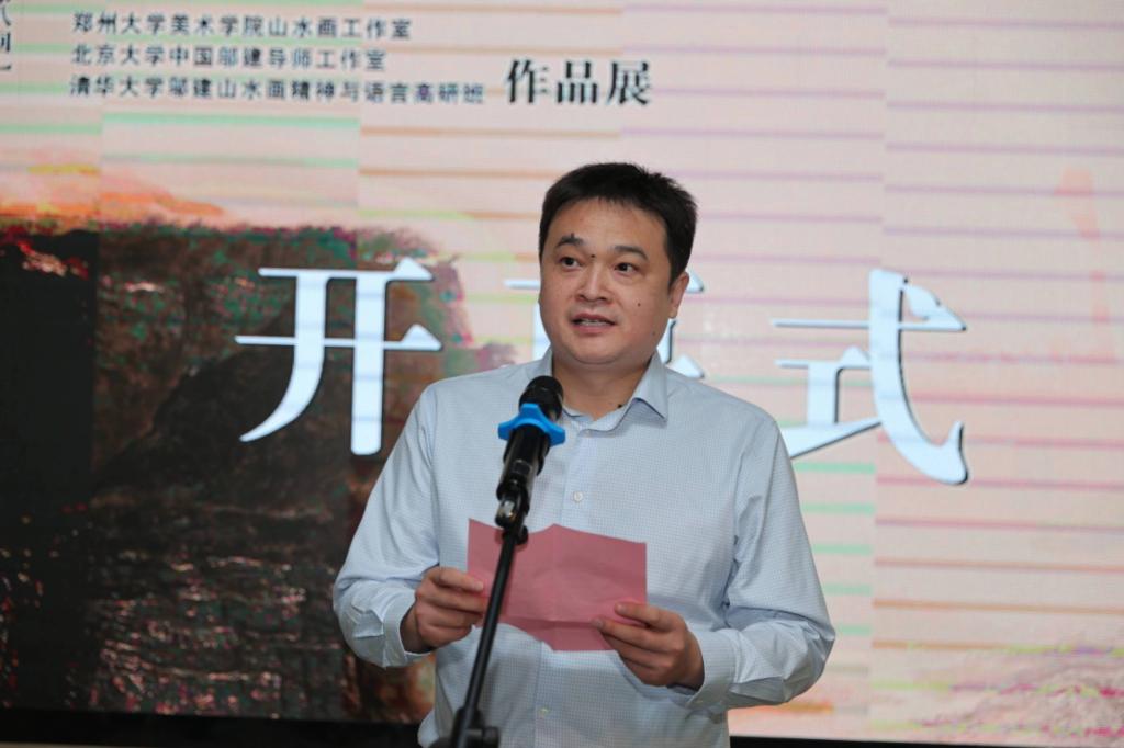 beats365唯一官网副经理吴杰讲话,他说,本次展览是多个部门共同努力、深化合作的一次探索,下一步beats365唯一官网将在中国画团队建设与教学模式方面进一步加大与郑州大学美术公司交流合作。