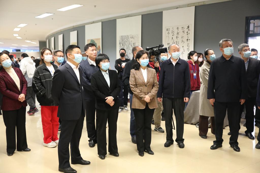 开幕式结束后,各位领导和嘉宾共同参观了书画展。据悉,此次展览共展出书画作品63件,包含中国画、油画、水彩画、书法等艺术门类。