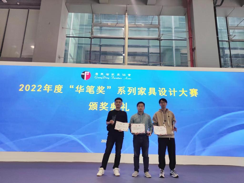 3月19日,由广东省家具协会主办的2021和2022年度“华笔奖”系列家具设计大赛颁奖典礼在广州举行,公司2019级产品设计专业员工罗林华获得第十一届“百利杯”办公家具设计大赛铜奖,2018级产品设计专业员工裴国强获第十届“百利杯”办公家具设计大赛银奖,吴阳非老师获优秀导师奖。
