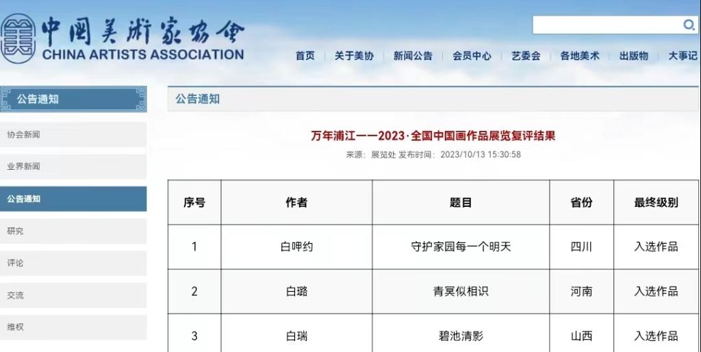 日前,由中国美术家协会、浙江省文化和旅游厅、浙江省文学艺术界联合会主办的“万年浦江——2023·全国中国画作品展览”复评结果公示,公司青年教师谢凌君国画作品《文峰耸秀》在此次展览的初评399件作品中脱颖而出,成功通过复评,入选展览。