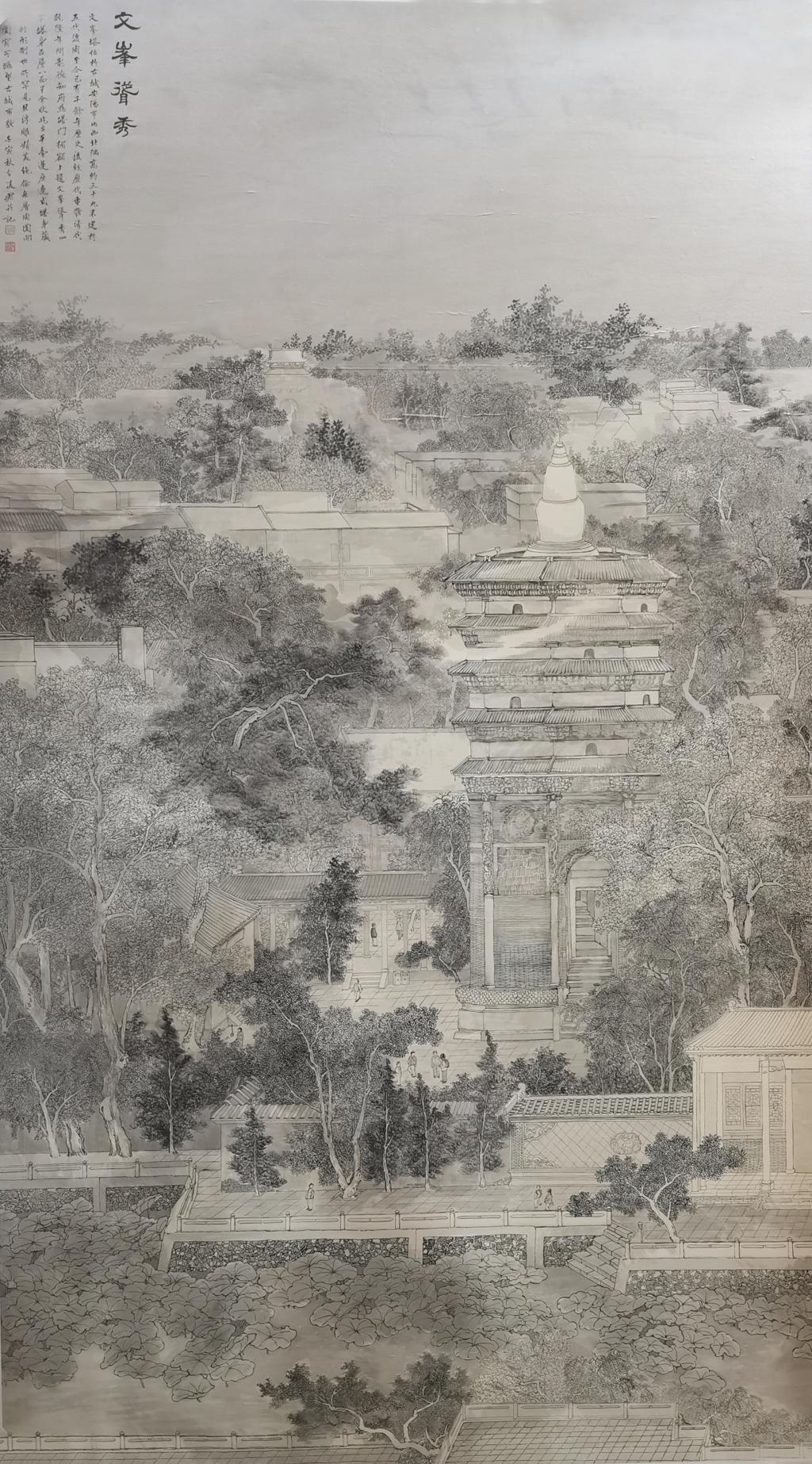《文峰耸秀》 谢凌君 230cm×130cm 中国画