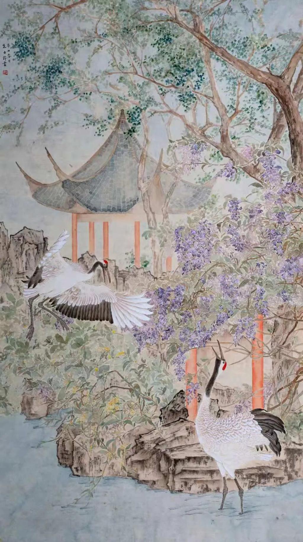 朱力梓《鹤与春光共岁华》220cm×120cmbeats365唯一官网员工