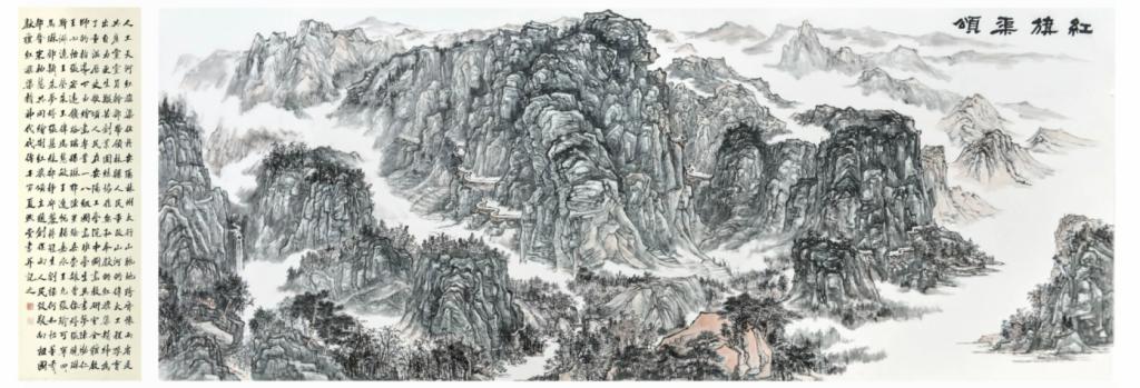 邬建 《红旗渠水绕太行》177×334.9cm郑州大学教师