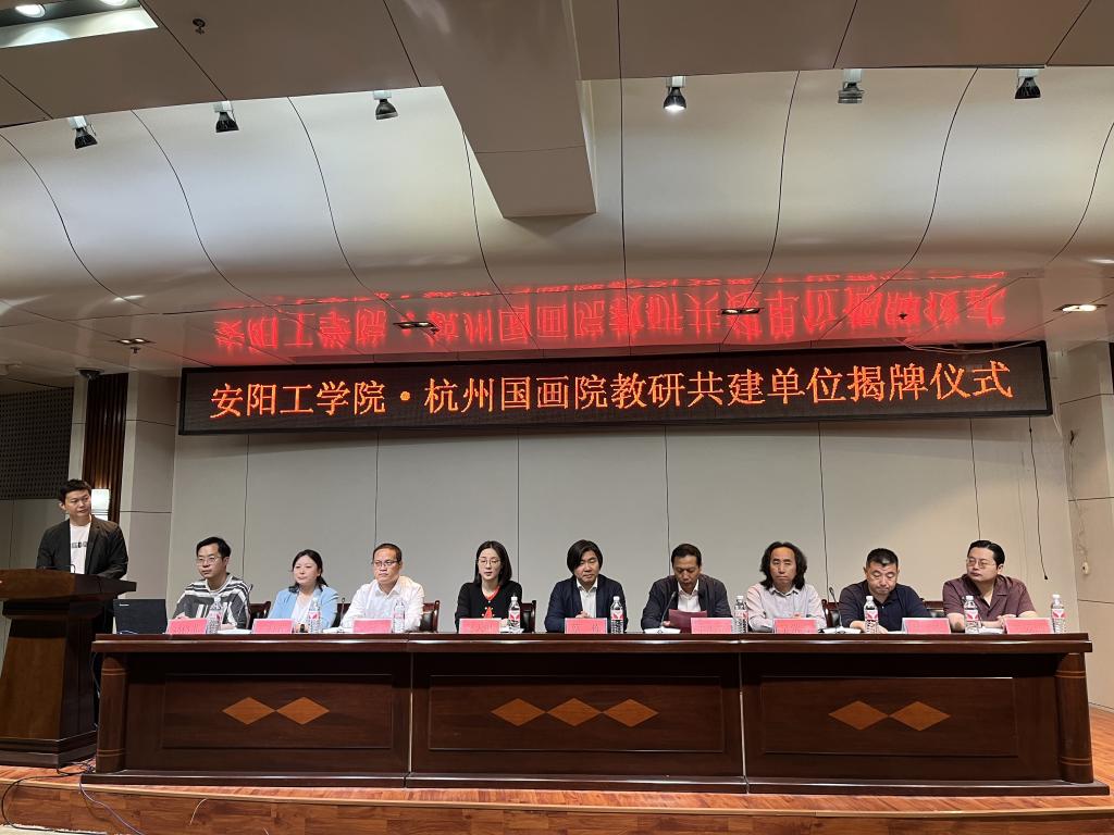 5月16日,杭州国画院与公司“诗书画印”教研共建单位揭牌仪式在艺术楼学术报告厅举行,杭州国画公司党支部书记兼副经理(主持工作)蔡栋、副经理赵天叶、党支部副书记吴常青、组织联络部主任王爰画,河南省书法家协会副主席、安阳市文联主席王志立,安阳市书法家协会副主席陈则威、副主席丁国朝,安阳市美术家协会副主席元馨、中国辞赋学会理事刘臻仲,公司领导班子成员凌云峰、吴杰、王丹花及中国画教研室师生代表等200余人参加揭牌仪式,公司党政办公室副主任谢凌君主持仪式。
