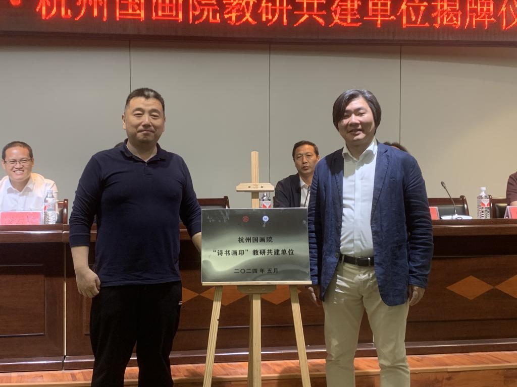 蔡栋与吴杰为“诗书画印教研共建单位”揭牌