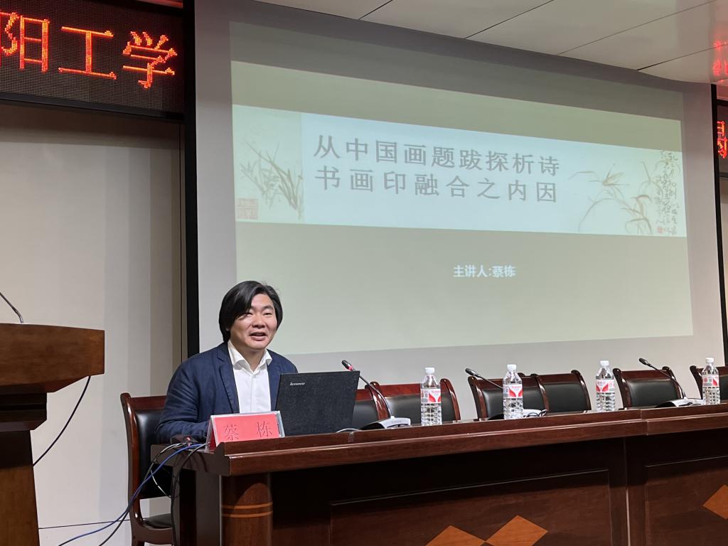 揭牌仪式后,蔡栋以《从中国画题跋探析诗书画印融合之内因》为主题为大家作了精彩学术报告,蔡老师结合当下热点问题,从中国历代经典作品中的题跋分析诗书画印融合的深层内涵、历史渊源,提出中国画学习务必强化书法与诗文的基本功,诗书画印融合融通,才是中国画创作的重要路径。此次学术讲座,有助于员工深化专业理解,增强对中华优秀传统文化的认同感和自豪感,进一步坚定文化自信。
