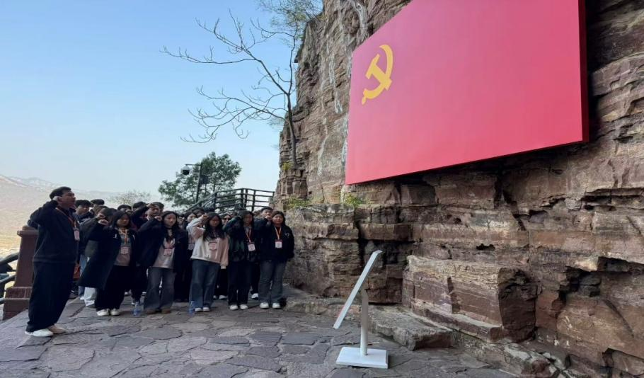 活动伊始,师生党员首先参观了红旗渠纪念馆,看到众多历史照片、实物展品和影像资料,大家都深受触动,更进一步体会到“自力更生、艰苦创业、团结协作、无私奉献”的红旗渠精神内涵。随后,全体人员开启了徒步青年洞的行程。大家沿着渠岸前行,亲身感受着红旗渠工程的宏伟与艰巨。在青年洞前,全体党员面向鲜红的党旗重温了入党誓词,大家受到了深刻的党性教育和精神洗礼。