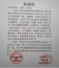 社区给刘天娇同学的表扬信