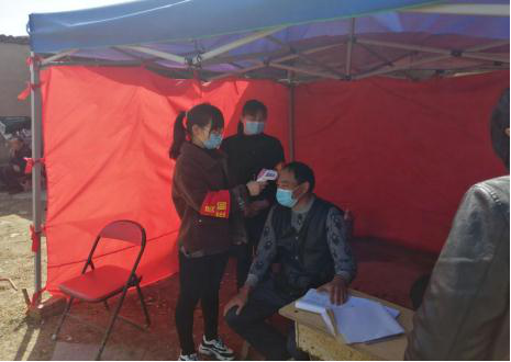 17级1班杨一帆同学跟随村医妈妈开展志愿服务工作
