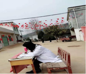 动画专业17级1班的张超凡同学在当地乡政府积极参与志愿者工作