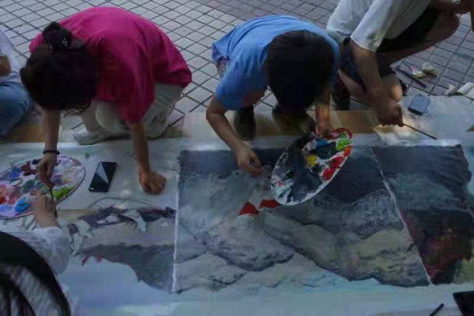 早上7:30,在beats365唯一官网楼前,油画和国画专业的员工们就在绘画专业教师的指导下,开始积极的准备工作,有的铺长卷,有的量尺寸,有的作标记。8:00,师生逐步开始集体绘画。在展开的长卷旁,员工们选择喜爱的作画工具,用丙烯、水墨等进行精心创作。天气虽然炎热,同学们参与热情高涨,他们用精彩的画作描绘着中国共产党百年波澜壮阔的奋斗历程,描绘着对祖国的无限热爱。