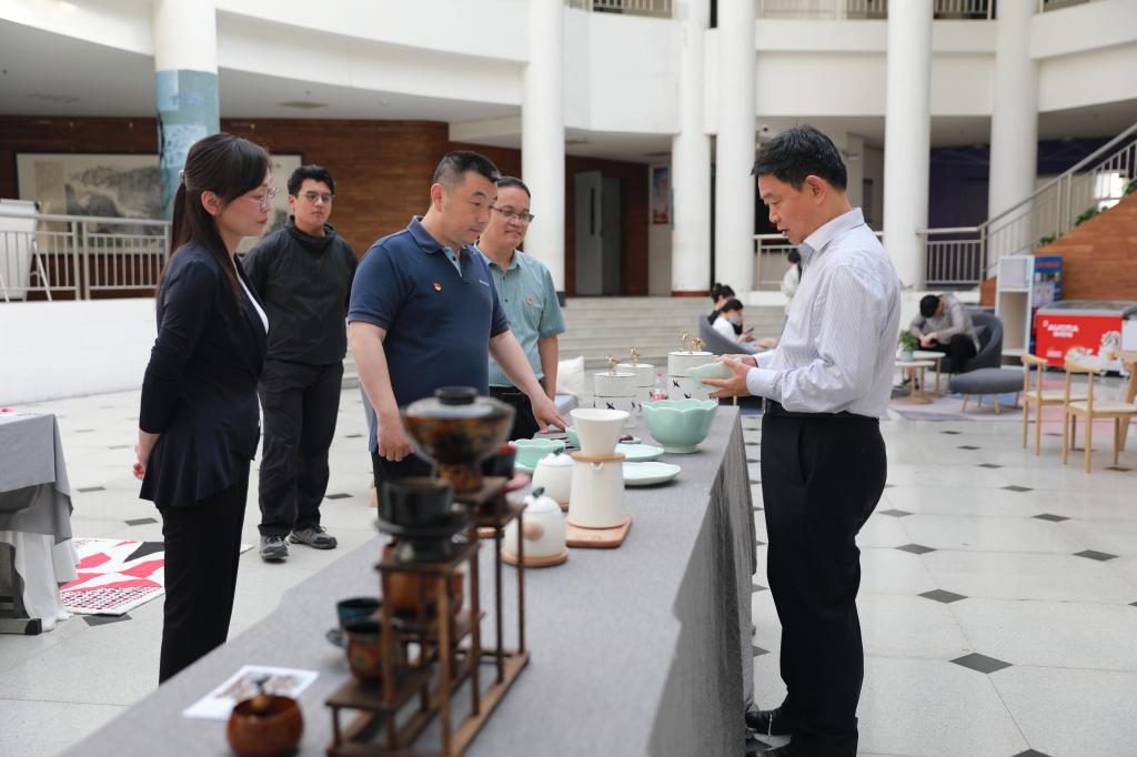 调研过程中,任中普还参观了公司艺术类毕业设计作品展,并提出指导意见。