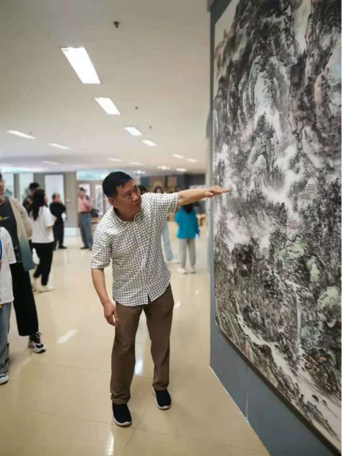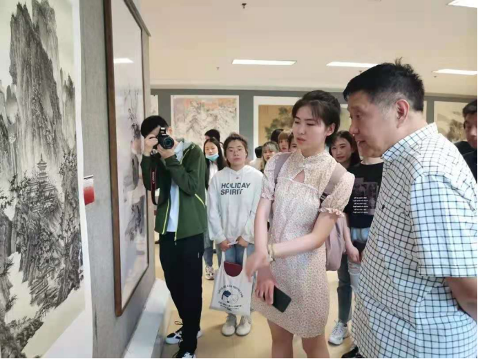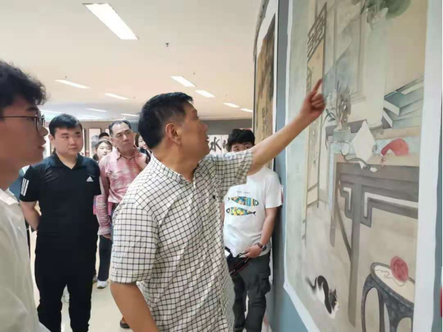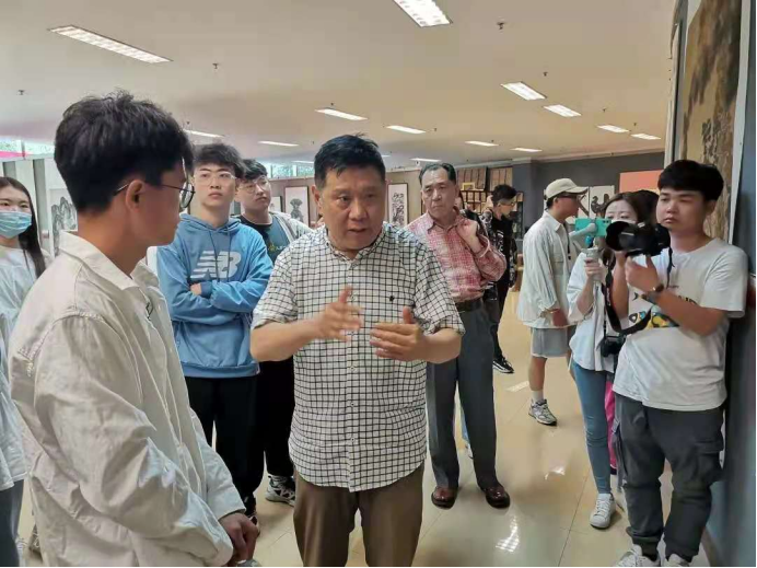 随后,马国强以及曲春林、范怀珍、李尚昱、郭建明、刘佰玥、张军民、田笑、宋威、唐川府、元馨等艺术家莅临公司当天上午开幕的庆祝中国共产党成立100周年系列展之“beats365唯一官网绘画专业师生作品展”,进行观摩指导。