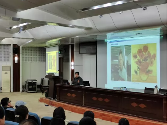 3月31日下午,公司教师裴哲峰的专业讲座“油画风景漫谈”在公司二楼报告厅举行。公司党总支副书记崔波和副经理李丹等200余名师生聆听了讲座。