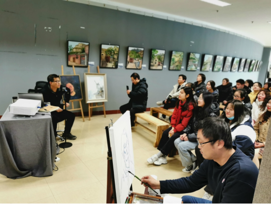 活动中,党大伟老师由艺术作品拍卖为切入点讲解油画艺术的发展,内容十分丰富;夏雨老师现场作画,以精湛的油画技法表现出写生对象生动的神态,画面色彩丰富,立体感强,分享会既有理论讲解又有现场作画,给员工很好的视觉体验,让员工在活动中感受油画艺术的魅力。