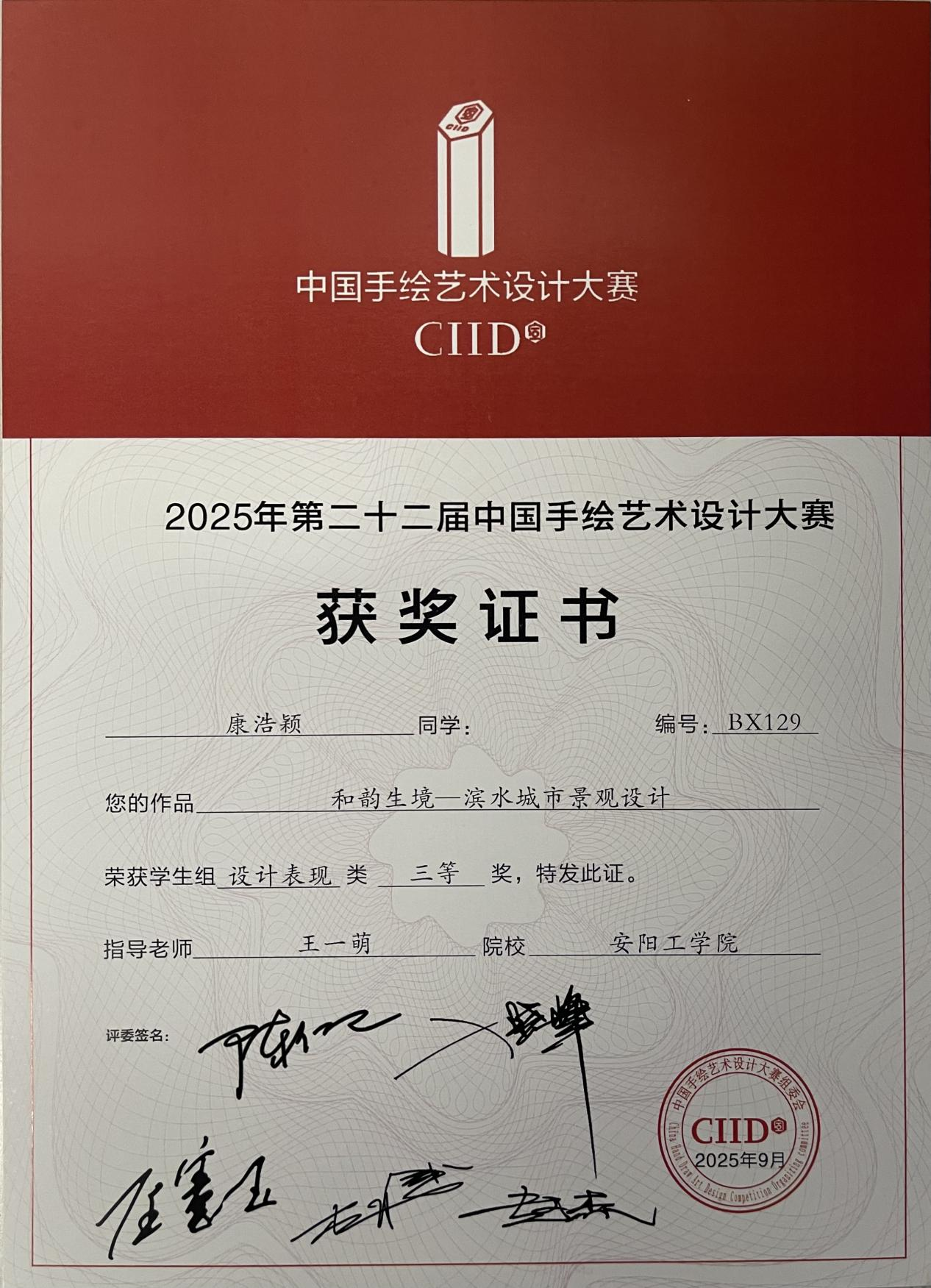 公司康浩颖同学的作品《和韵生境——滨水城市景观设计》获三等奖