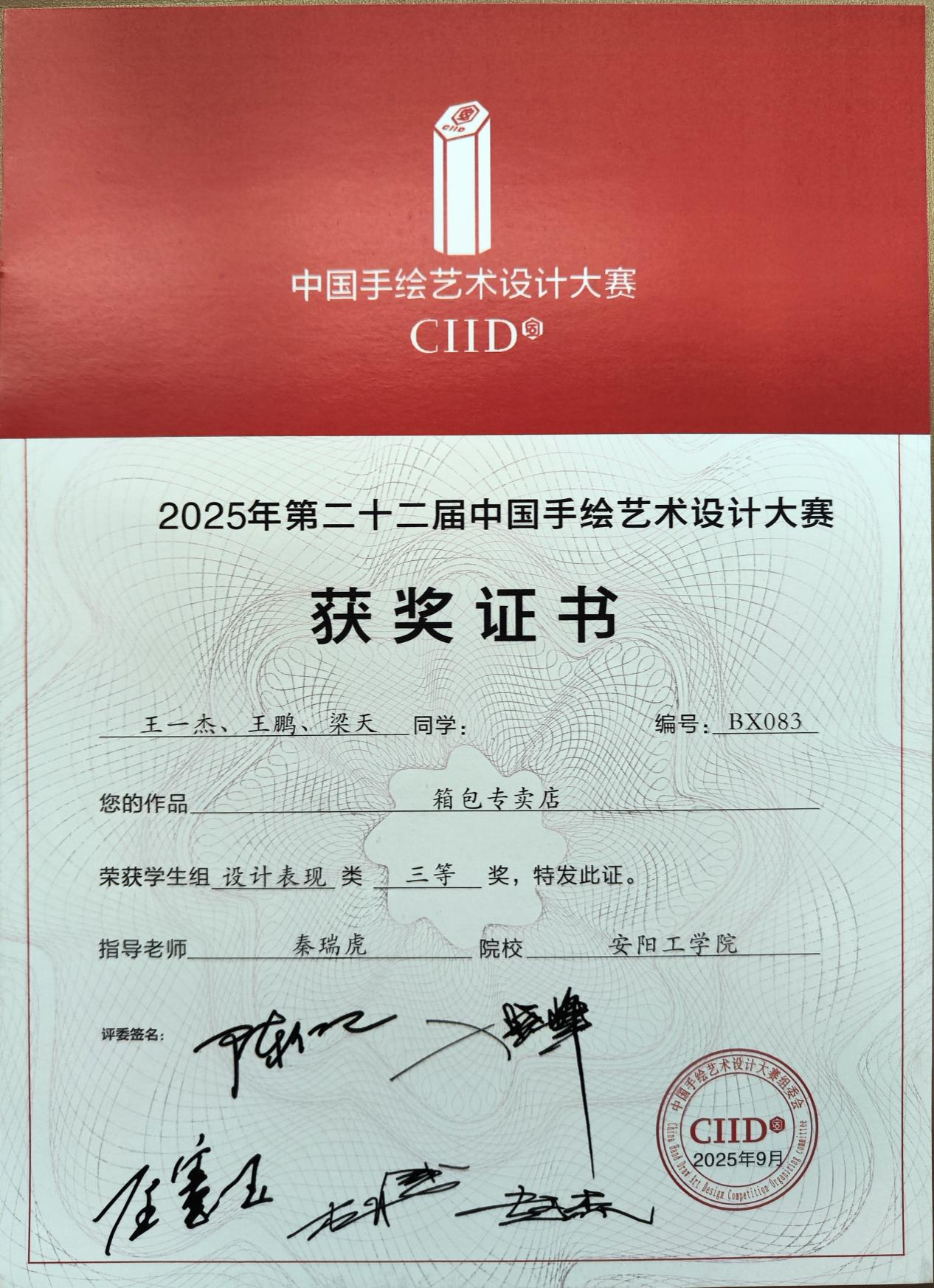 公司王一杰、王鹏、梁天同学的作品《箱包专卖店》获三等奖